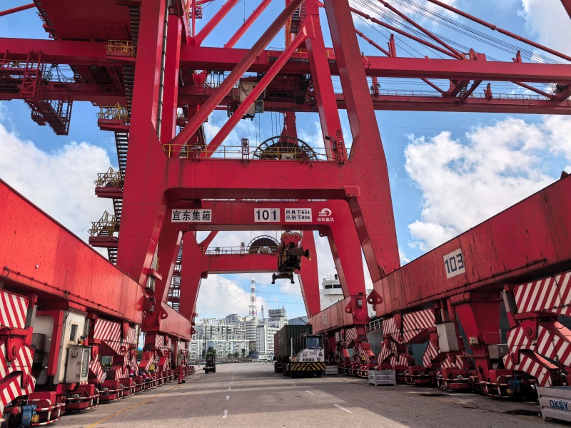 6时整,延迟两小时到港的“安盛20”轮停靠一泊位,需赶在16时落末水前完成 582 箱装卸;三泊位“东方源远1”轮进入开船倒计时,14时30分需按时离港,仍有 545 箱待装。三条船舶作业时间密集交叉,集卡资源瞬间紧张,压力迅速传导至全码头作业环节。