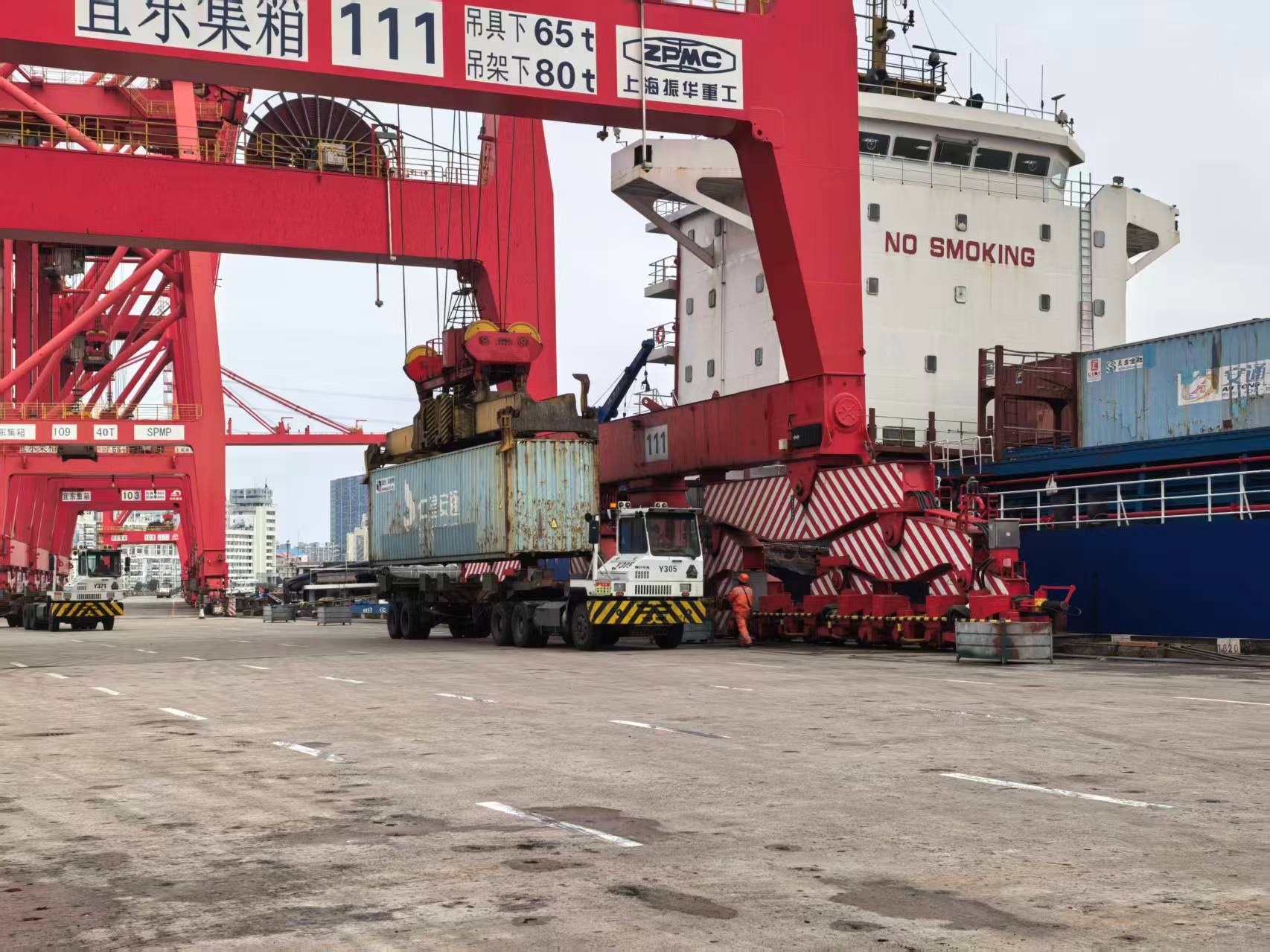 恰逢抢修当天,“繁荣69”“安盛21” 轮相继靠泊军工路码头,受Y104桥吊抢修影响,两艘船舶仅能各调配一台桥吊开展作业。其中“繁荣69”轮箱量多、装卸任务重,单桥吊作业面临极大效率考验。Y102桥吊司机潘涤迎难而上,凭借过硬的操作本领和丰富的作业经验,精准操控桥吊完成每一个装卸动作,全力攻坚作业难题,最终确保“繁荣69” 轮准点完成装卸计划,保障船舶船期不受影响。