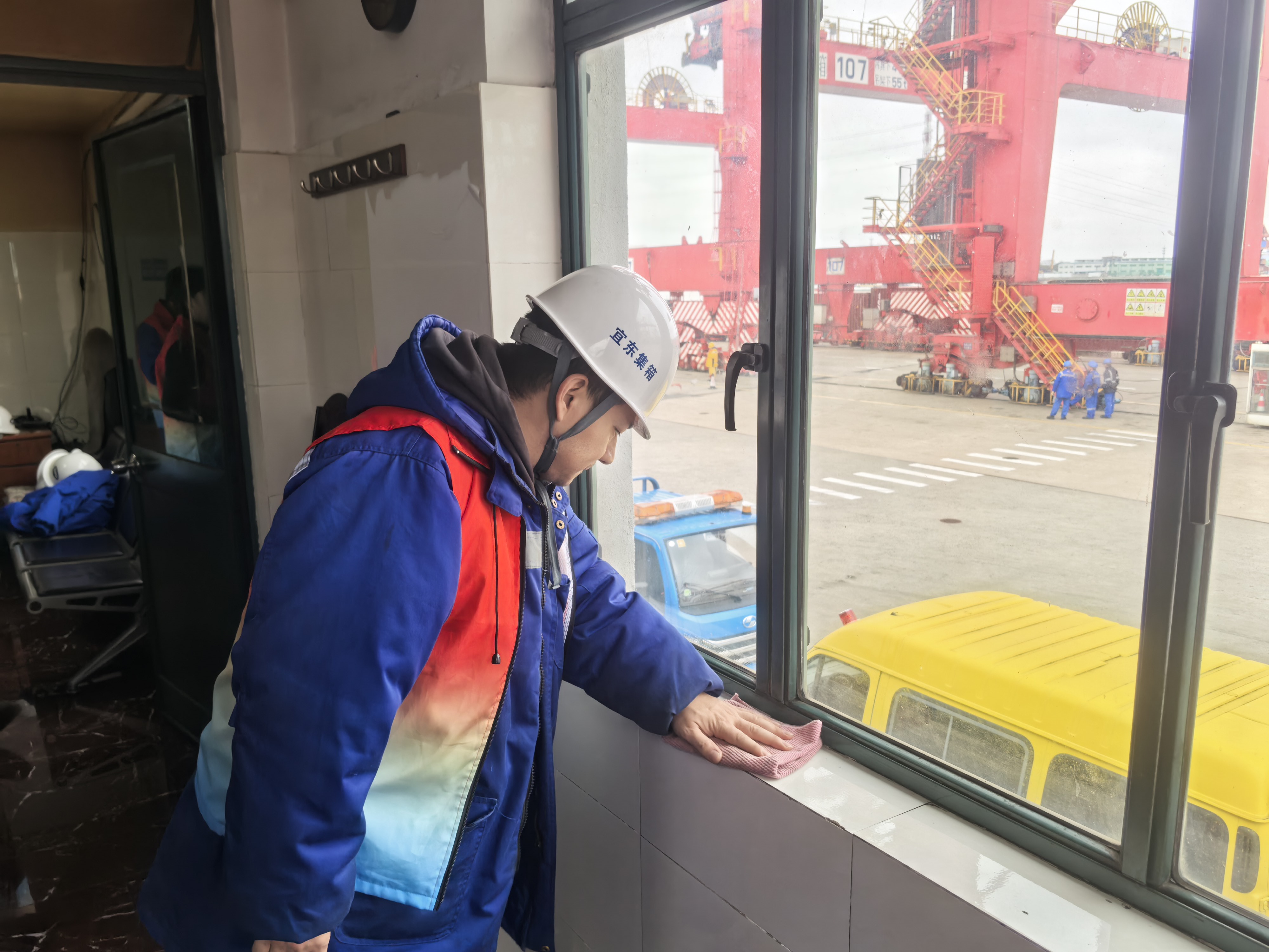 3月4日上午,营运操作部党支部率先行动,组织开展“学雷锋践初心”主题党日活动,党员带领团员青年组成志愿队伍,聚焦桥吊司机更衣室、职工驿站开展环境卫生集中整治。志愿者们身着红色志愿马甲,手持清洁工具分工协作,清扫地面垃圾、清除卫生死角,细致擦拭更衣柜、桌椅等设施,认真整理物品、清理废旧杂。经过近一小时奋战,两处公共区域环境焕然一新。